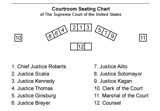 Also, if you were wondering where new Chief Justice Elena Kagan would be sitting, wonder no more as SCOTUS has also released the Court’s new seating chart. Kagan will be sitting to the left of Justice Samuel Alito, all the way on the right side of the Court as viewing it from the audience.